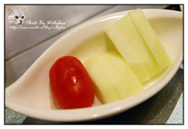 這個青蘋果和小蕃茄也是搭配著吃的,所以這道才叫做青蘋果松阪豬,和豬肉一起吃就是比較清爽,但是感覺水果和肉的味道並不是很能融合。