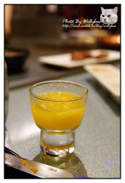 被金剛火燄燒過的鴨胸還不算完工,吃完麵包沙拉開胃菜之後這邊會上一杯柚香Sorbet,冰沙狀的喝起來微微酸甜。
