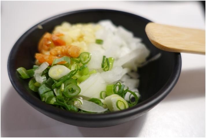 洋蔥,蒜末,蔥末,蝦米??這不是佐料吧?? 原來這是夠夠肉高湯好喝的秘訣之一!另外一點是夠夠肉標榜高湯底有用水果去熬煮,所以煮過肉湯頭還是很清爽,這點我倒是沒有吃出來..