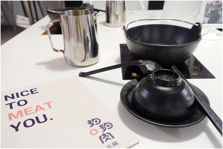 純百的桌子上放著黑色的鍋子和餐具,雖然只是一個配色上的小巧思可是卻讓吃火鍋這件事變得很時尚!