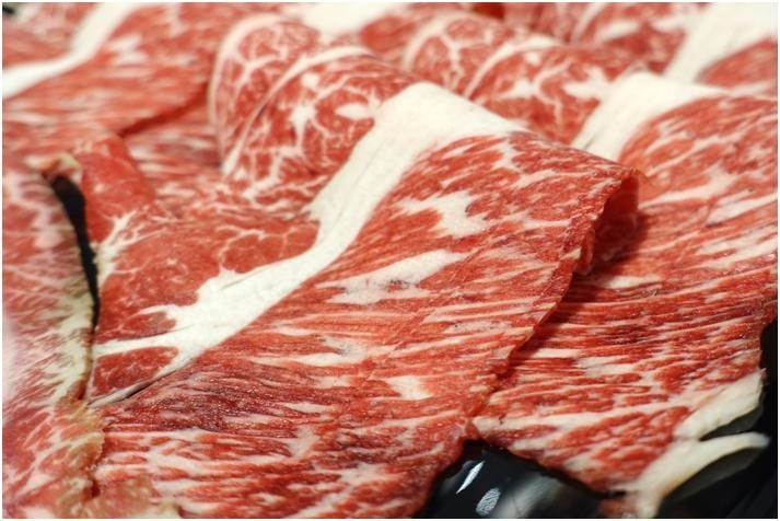 可以看的出來肉質很細,偏淺淺的粉紅色,肉跟肉間的紋理很清楚,油脂的分佈的很細很密.