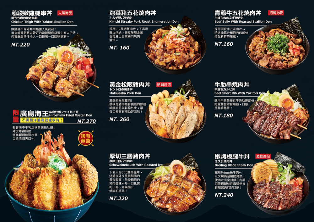 直火人 直火燒肉丼飯屋 菜單: