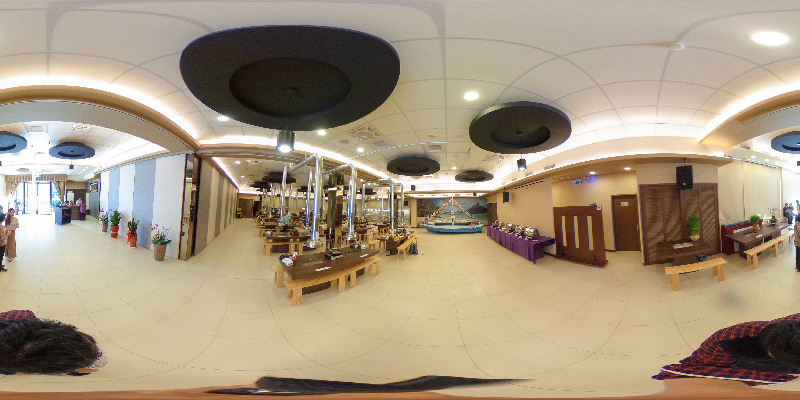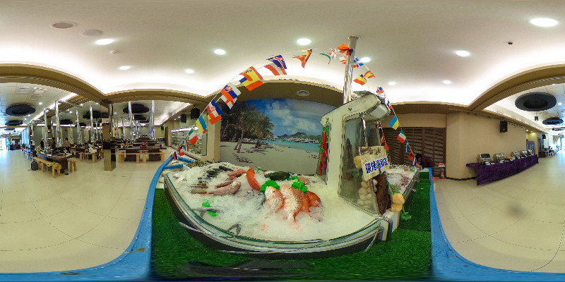 入口等候區相當寬廣,在延伸至主要用餐區~正對面看到的那艘船正在捕貨呢~也是大家來金銀島的目標!!!就是要吃到絕新鮮的海魚啦!!