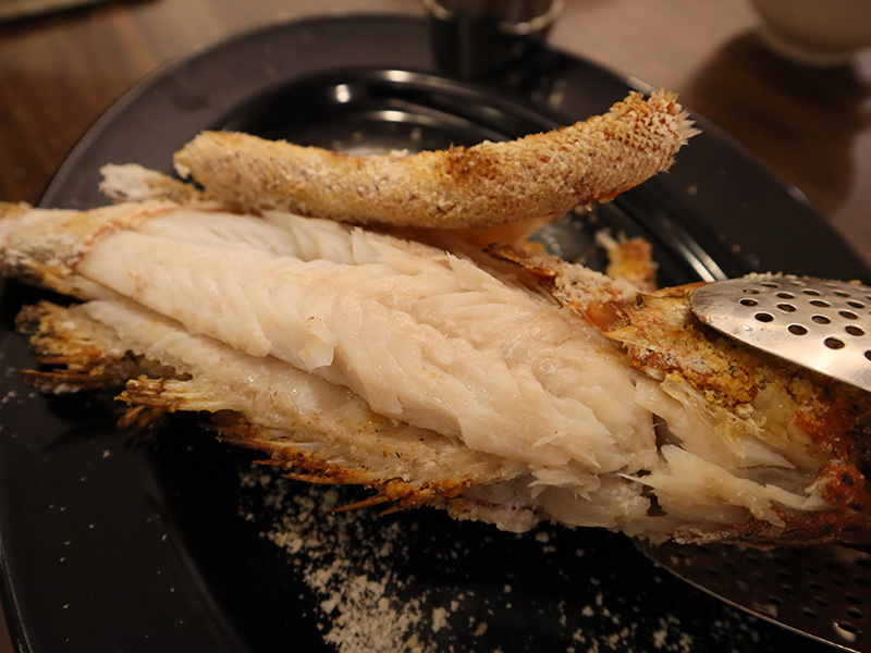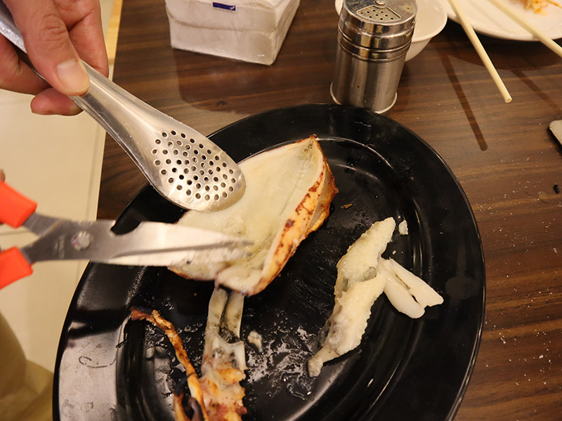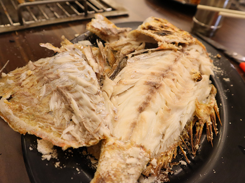 為什麼我好像都會一樣?因為金銀島的服務人員都很貼心,會隨桌問問有什麼需要,看到烤魚的時候也會來到旁邊問問需不需要協助~