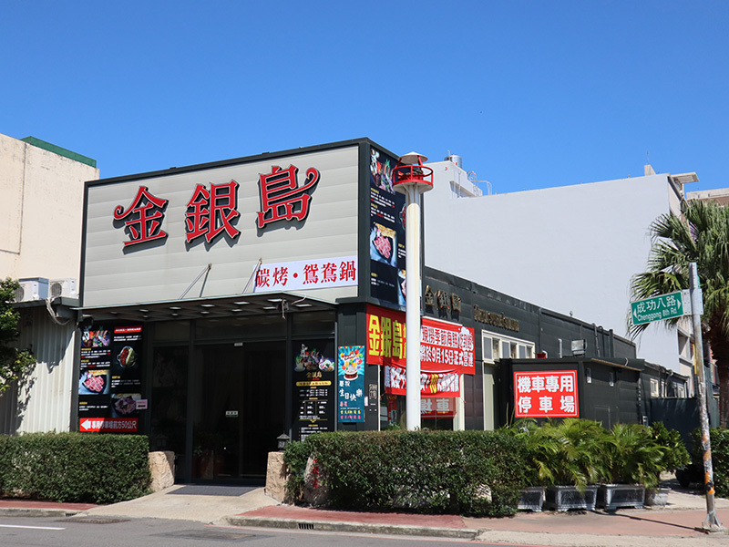 走到莊敬南路很容易就找到金銀島碳烤、鴛鴦鍋,不得不說這附近好停車,加上是從婚宴餐廳轉型,所以不論是摩托車或是開車都有提供專用停車場~