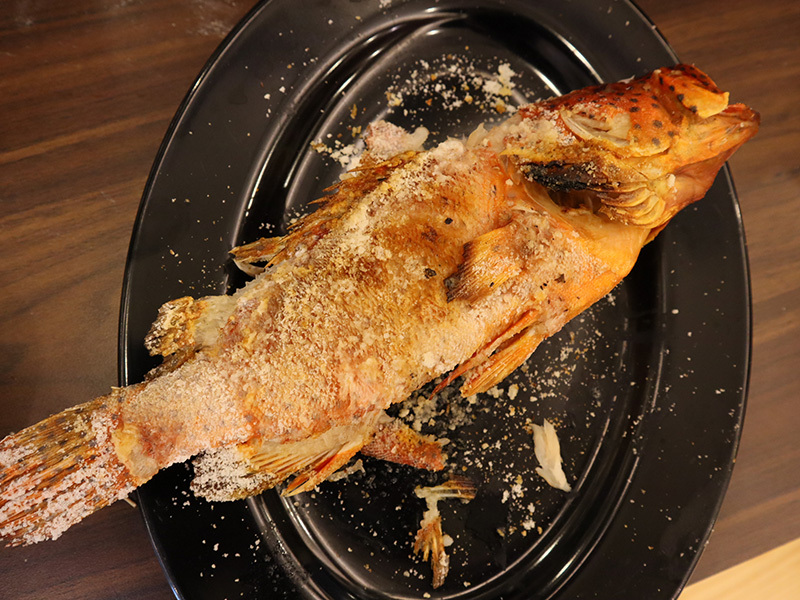 開始吃魚!!!!抹滿鹽現烤的方式怎麼都部會太失敗的~吃到這魚的原味,更吃得到海的鮮味~