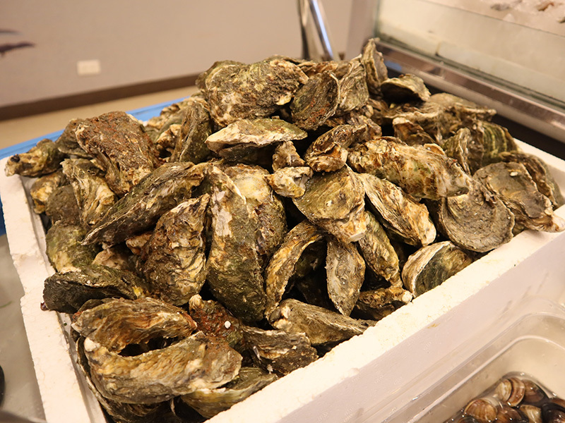 在船的另一旁也擺著像牡蠣、鯖魚、白蝦、魚下巴、螃蟹(金門蟹)、魷魚、小卷和軟絲~