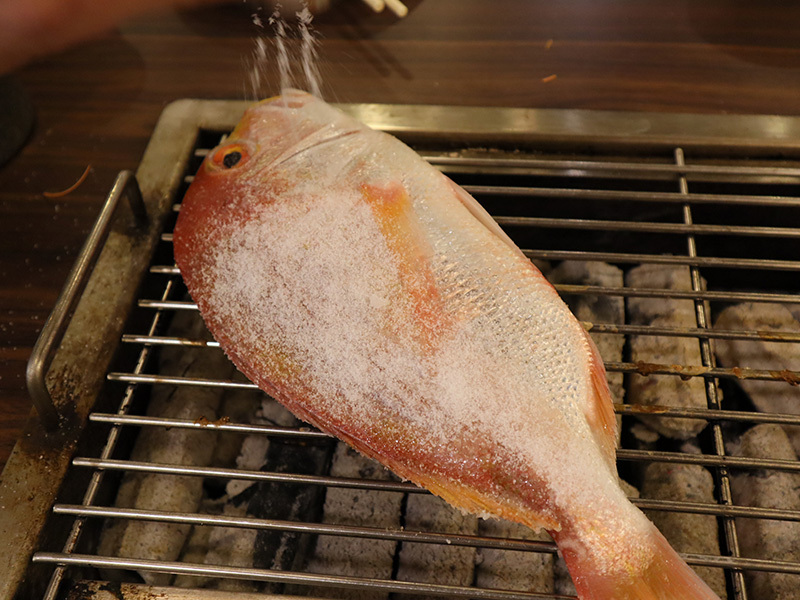 把雙面都撒上厚厚的鹽巴~然後開始烤魚~原來魚的眼睛變成白色之後,就是烤熟的訊號耶!