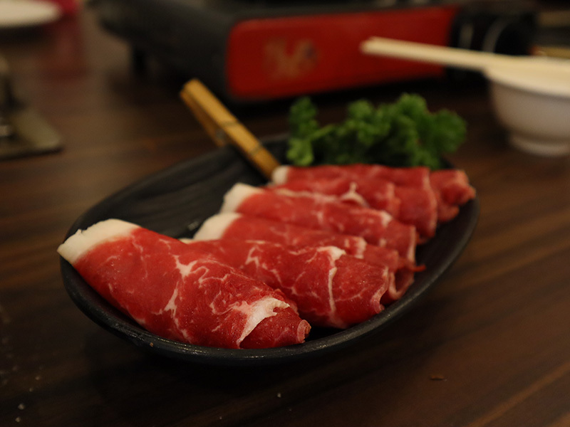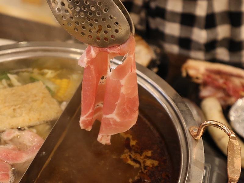 剛剛送上來的肉片就別看了~下鍋吧~牛肉簡單涮一下就可以吃了~豬肉也挺不錯喔~