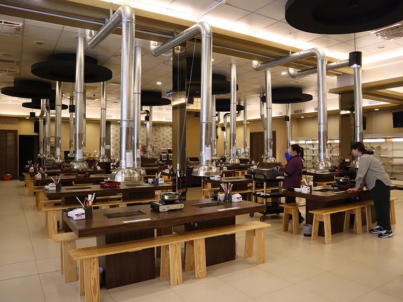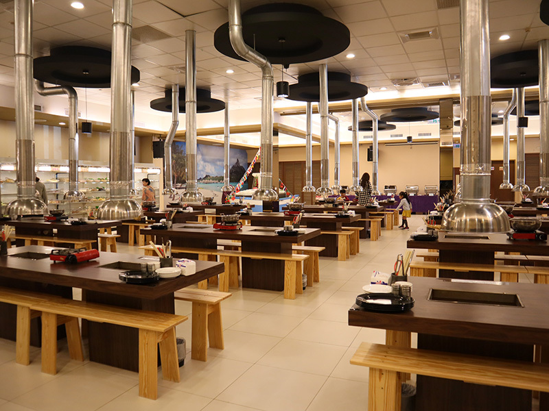 一看到這一根根的排煙煙囪可是老闆為了大家在燒烤時不會煙霧迷漫的特別設計~總共有兩段式的抽風高度方便燒烤使用~