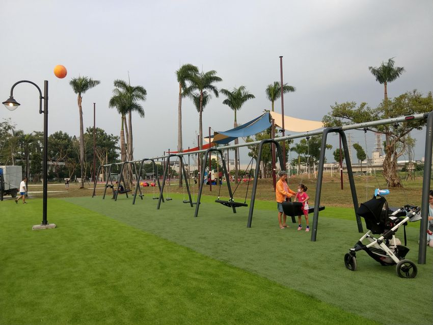 除了兒童遊樂設施之外,公園裡還有很多有趣的遊戲空間