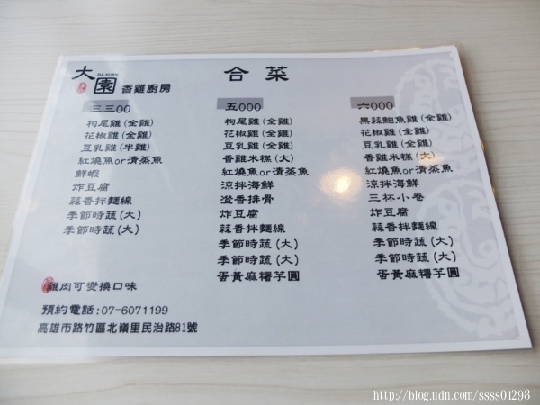 ▲菜單合菜部分有分3300、5000、6000元,雞肉可以變換口味喔!