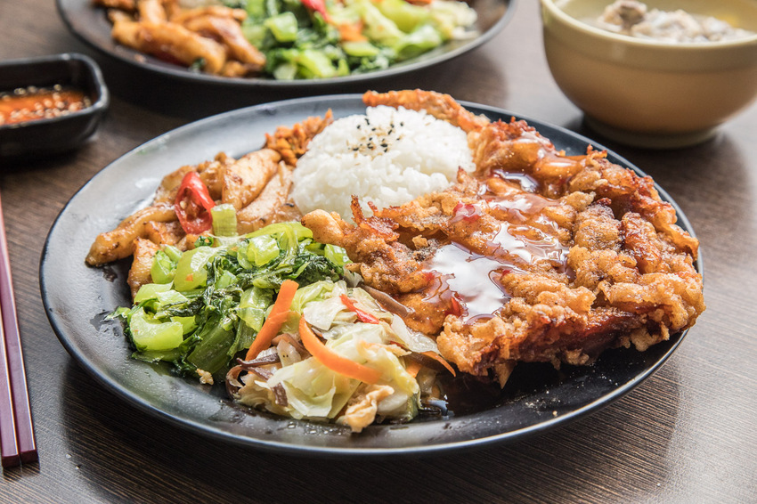 九九排骨飯是店裡的看板料理,許多企業大佬都深深為他著迷,嚴選每日現宰的溫體豬,再自行分切、拍打、醃漬,現點現炸,剛上桌時那股香氣超逼人的!