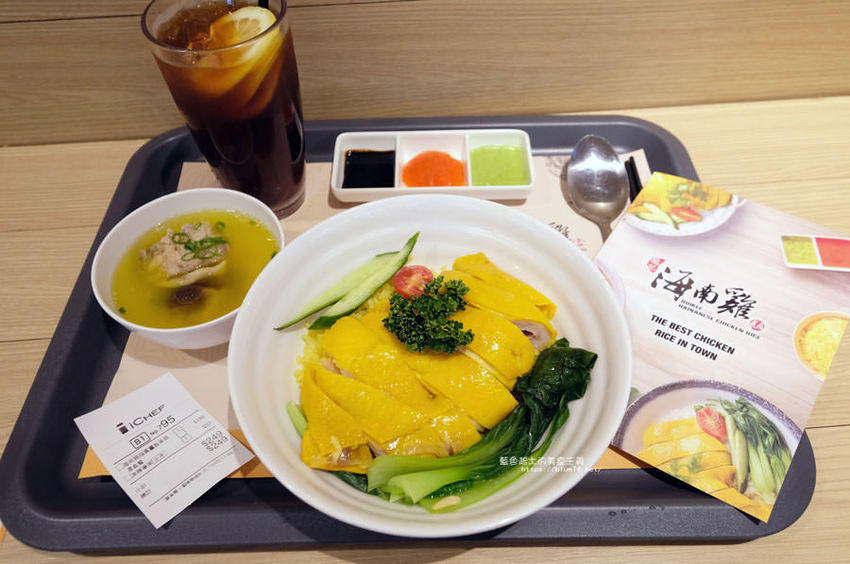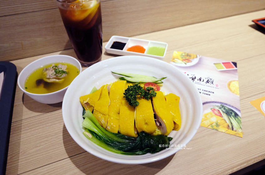 有海南雞腿、香菇雞湯、三款秘製醬汁
