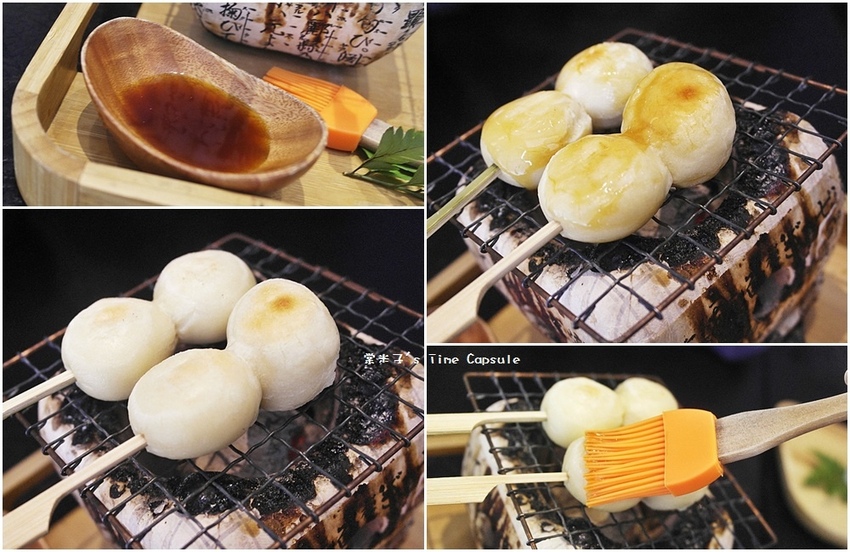 白胖胖的糯米糰子在炭火上加熱著,