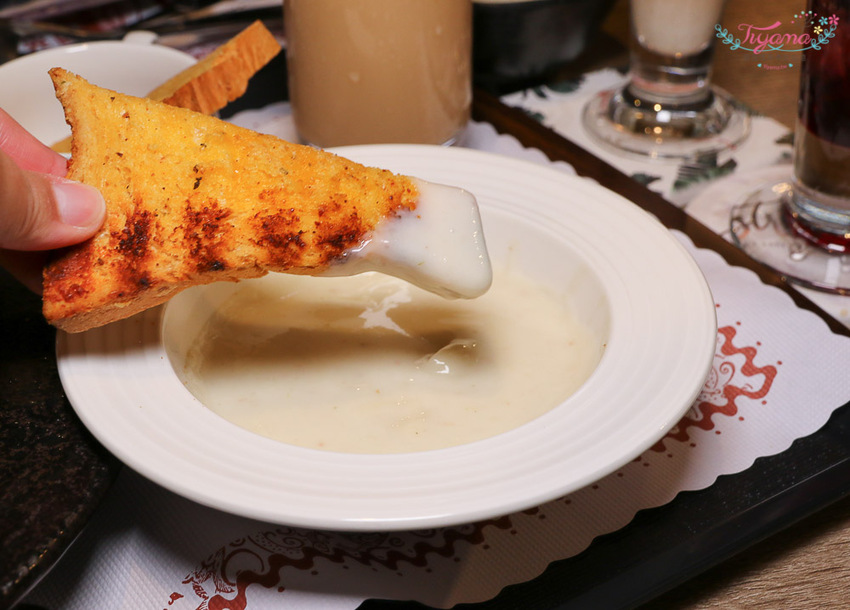香濃的主廚濃湯不論是單喝,或是沾著法式香蒜麵包都很美味