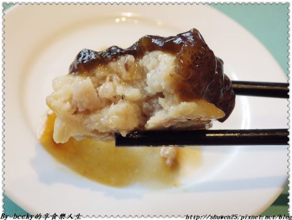 咬一口,Q彈帶味的烏參與裡頭蝦漿及魚漿製成的餡,在嘴中咀嚼有著咕溜咕溜口感及紮實有味的味道,若有白飯,也是很下飯的呢!