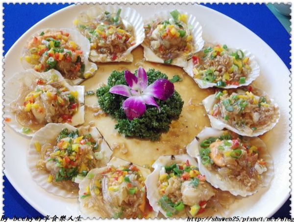這是清蒸扇貝淋上店家特調的蒜泥醬汁,聞起來味道香濃,引起食慾,這道是重口味喔!