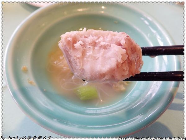 舀了一碗,可以看到裡頭除了中卷外,還有肉絲、芋頭、手工丸及米粉等食材。