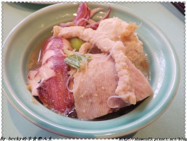 這道送上桌,這是豬腳及鰻魚的組合搭配,再加上裝飾,大家都很驚嘆這道菜!可以看的到擺盤功夫外,也讓人看到師傅厲害的刀工及手巧藝術。