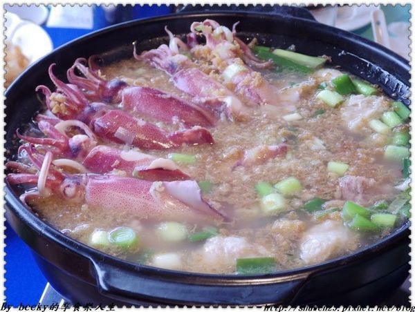 這道也是招牌菜之一,一上桌就看到料多實在,可以看到肥碩大隻的中卷,上頭還灑上蛋酥,香味直直撲鼻。