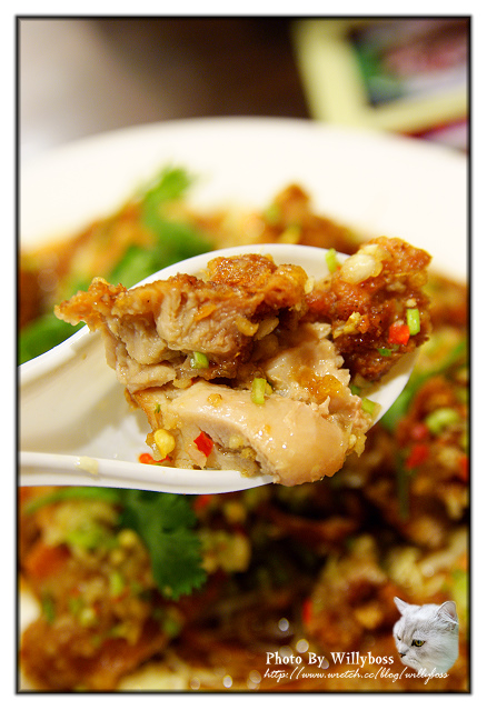 外皮炸的剛剛好不會扎口,雞腿肉質有中規中矩的水準,調味上真的有小辣,底下的醬汁很酸,酸酸辣辣的口味很下飯,個人認為比七彩雲南的好吃些,七彩雲南後來幾次吃到的椒麻雞都有點炸得太老太乾,不過目前龍岡一帶最好吃的椒麻雞還是首推對面的267飯店。