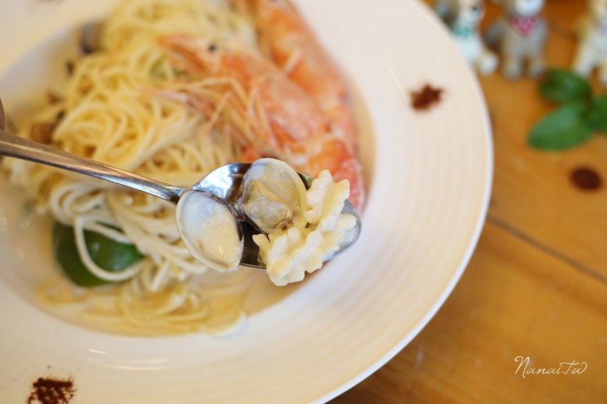澎湃味蕾一上桌後總引來客人的驚呼!店家對於食材製作皆十分用心,嚴選CamPania坎佩尼亞義大利麵,搭配自家熬煮的奶香醬汁,接著再擺上新鮮蛤蠣與兩尾天使紅蝦,最後淋上新鮮檸檬提味,讓這道紮實澎湃的用料,不管視覺還是味覺都是一種享受。