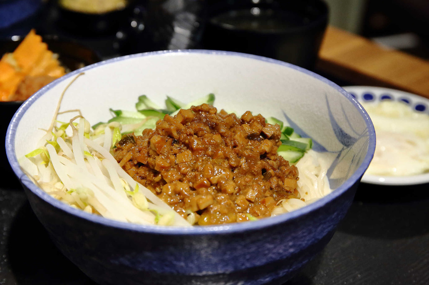 剛上桌時只看到滿滿肉燥,讓人不禁懷疑這哪是炸醬麵啊,其實麵在下面啦