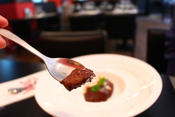 這道甜點做尾結果很剛好,非常的濃郁的苦甜巧克力味道,是吃冰的,和蘋果派熱熱吃正好相反,