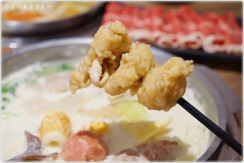 豬肉片放入牛奶鍋內滾煮,滑順入嘴肉嫩美味還有著牛奶的啾西多汁呢