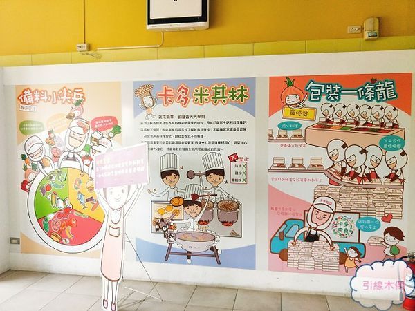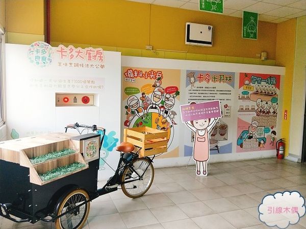 作業區前海報牆,以可愛的Q版圖繪,簡明易懂方式敘述「卡多良食」如何井然有序控管如此龐大的作業程序。古早味送貨腳踏車也很懷舊可愛。
