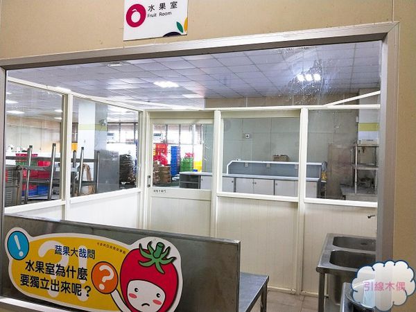 水果室,原來水果因為被歸類在『熟食』,所以要與其他生食做出區隔,並以自來水非地下水仔細的清洗。