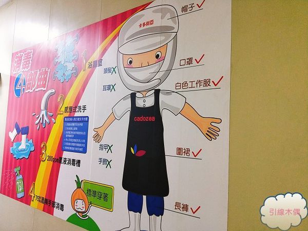凡是要進入烹調區的人,需遵守一定的SOP流程「消毒四部曲」,並有一定的消毒裝扮,經過風壓設備除塵。幾近醫院手術室的無塵高規格,認真核檢食物的衛生。