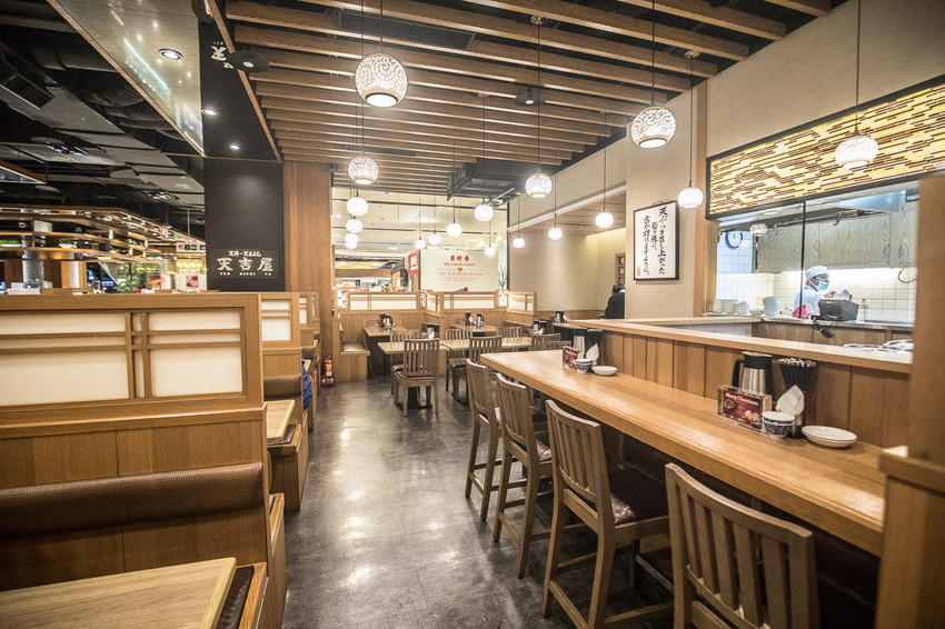 天吉屋大遠百店的座位數不多,畢竟在百貨公司美食街利用空間有限,不過天吉屋還是很用心地規劃完善的用餐動線,天吉屋-板橋大遠百店有吧台區、包廂區跟一般座位區,原木色系的裝潢給人一種溫馨輕鬆的用餐氛圍