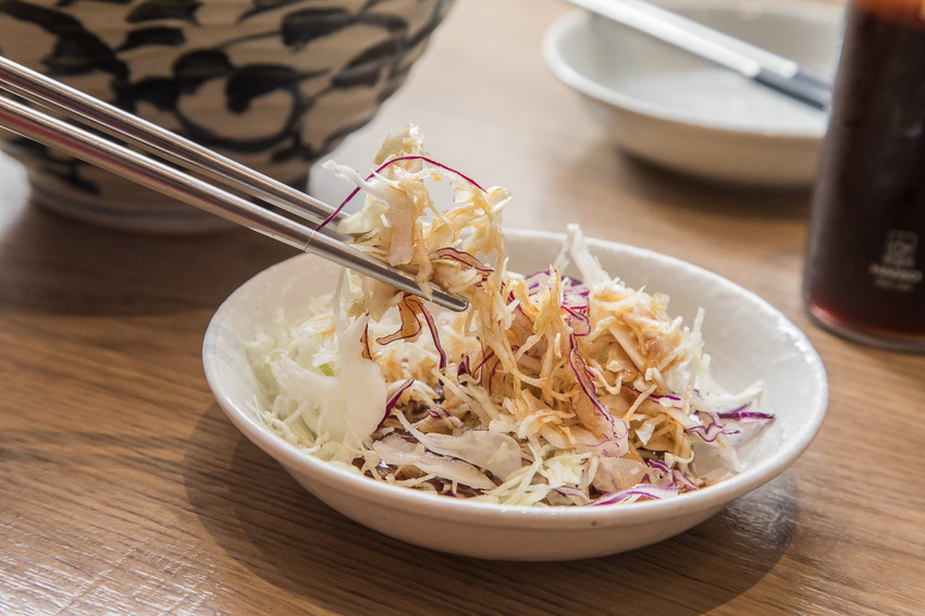無限供應的高麗菜沙拉,吃完跟店員說一聲可以再補,生菜絲水份都有瀝乾很清脆,日式油醋醬酸甜開胃,光這個沙拉咬咬都不知道吃幾輪去了^^