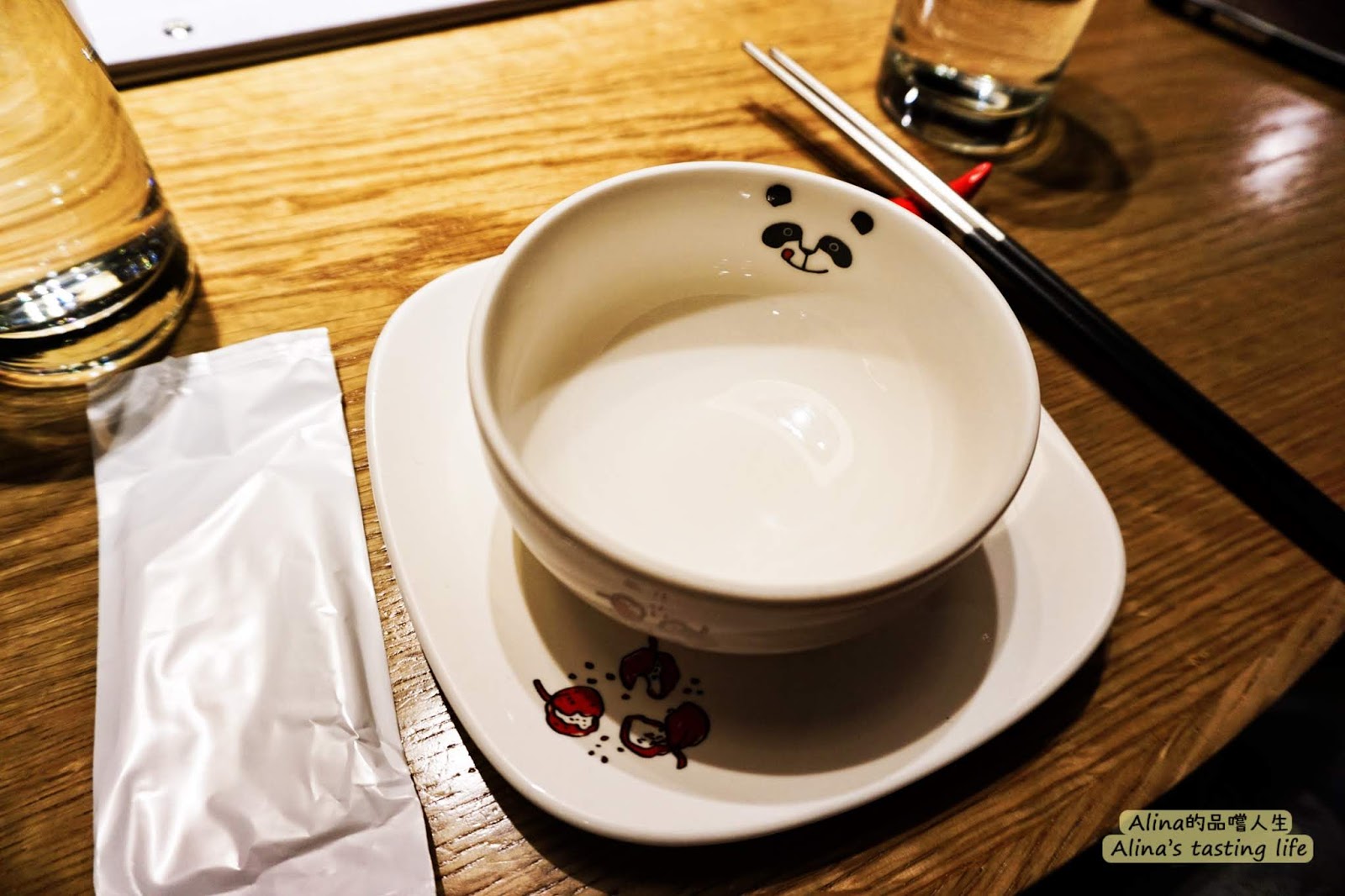 碗盤、筷架走的是可愛精緻路線,有很四川代表的熊貓印在碗上,筷架是個陶瓷小辣椒,蠻Q的