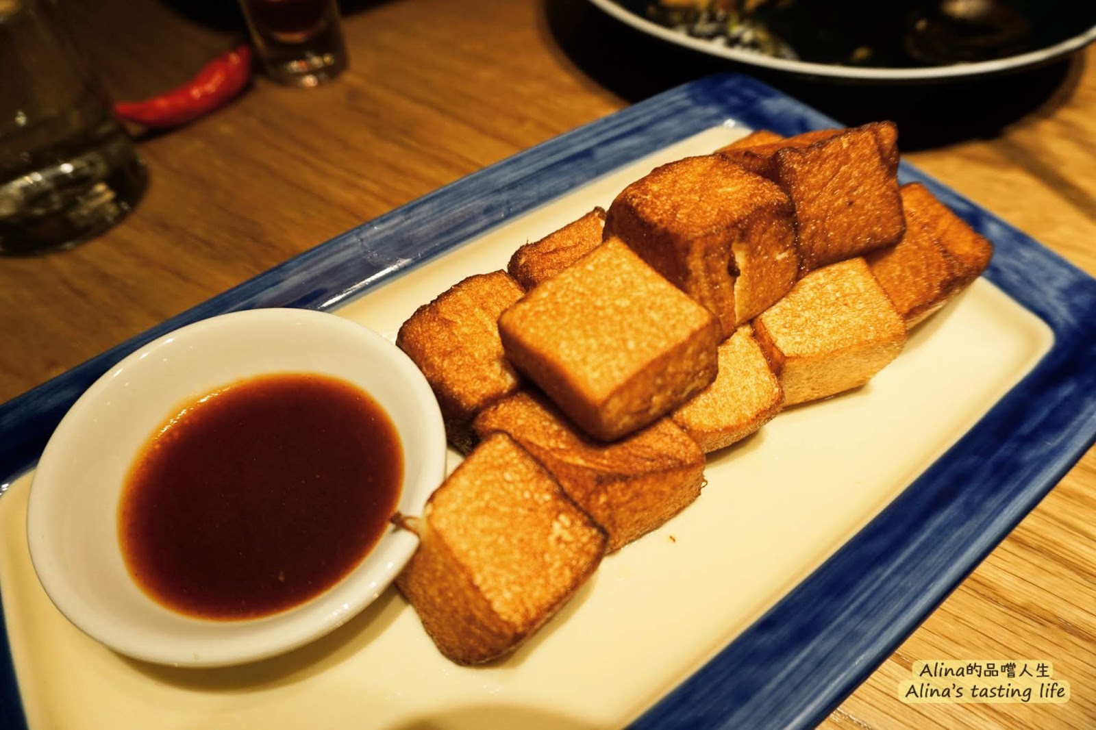 炸過的嫩豆腐,豆腐的口感像是雞蛋豆腐,外脆內軟,是會波動的那種嫩,配上特別的辣醬油膏,好吃!只是夾的時候要稍微有技巧,力道要夠才夾得起來,否則會碎掉或破掉啊