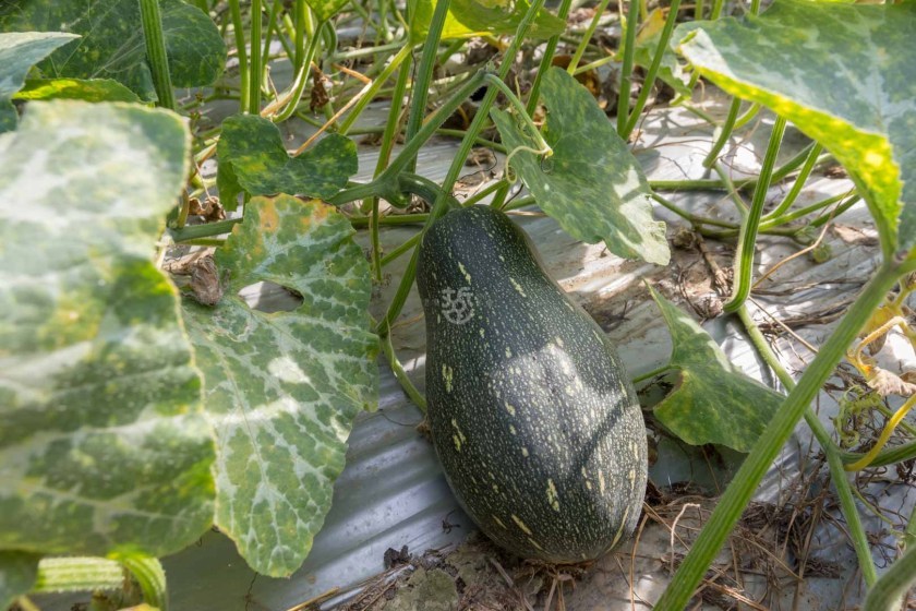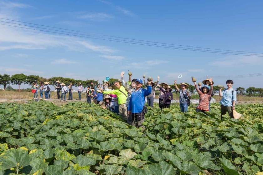 來到小毛農園,先聽取農園主人林建志介紹園裡所種植的南瓜、哈密瓜以及蕃茄後,大夥便挽起袖子,魚貫的下到南瓜田裡,動手採南瓜帶回家。