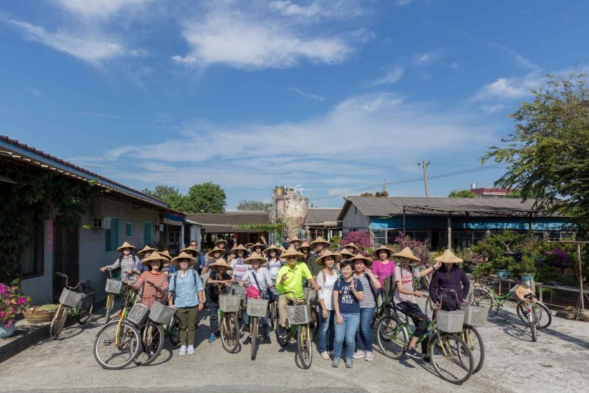 一群人由這裡出發,以腳踏車為工具,戴上斗笠,輕騎慢遊土溝村,開始了一天了旅程。
