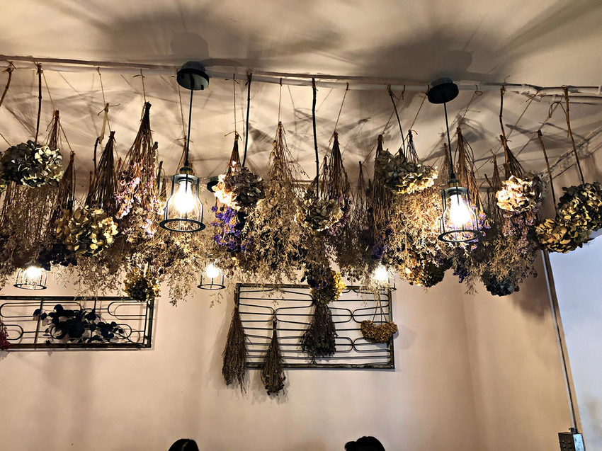 一進門,門口就有乾燥花牆,滿適合女孩拍照的,這裡處處可見深受少女最愛的乾燥花擺設