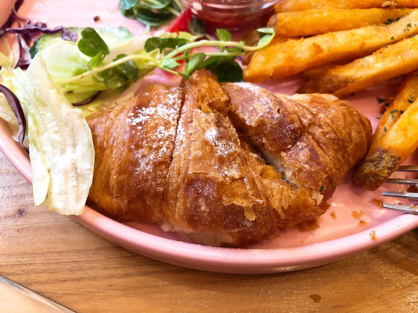可頌麵包吃起來很香酥,我覺得烤得剛剛好,上面還撒些糖粉,讓口味更香甜些