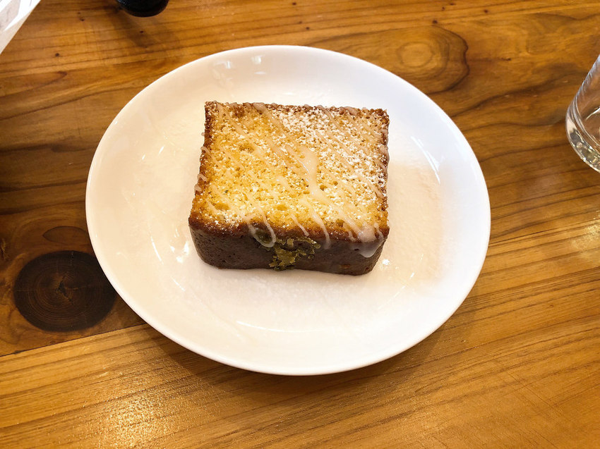 手工磅蛋糕,蛋糕體上有撒糖粉,但它本身不會太甜;作為飯後甜點真的是恰到好處,既不膩整體口感也不複雜