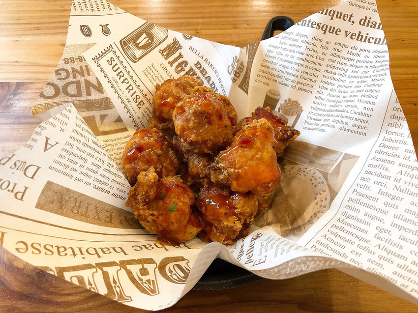 雞塊炸得香酥,裡頭的雞肉吃起來很香嫩,很容易一塊接著一塊的吃下肚