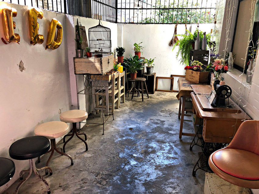 整間店都有一種小女孩的空間,以乾燥花搭配工業風來裝潢整間店