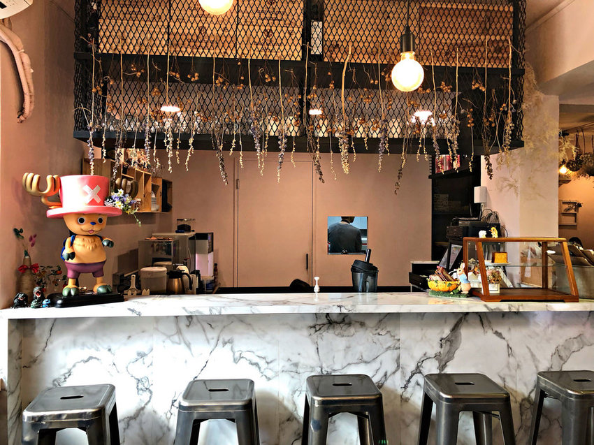 就連吧台區都布置得很美,檯面以大理石紋路作為布置