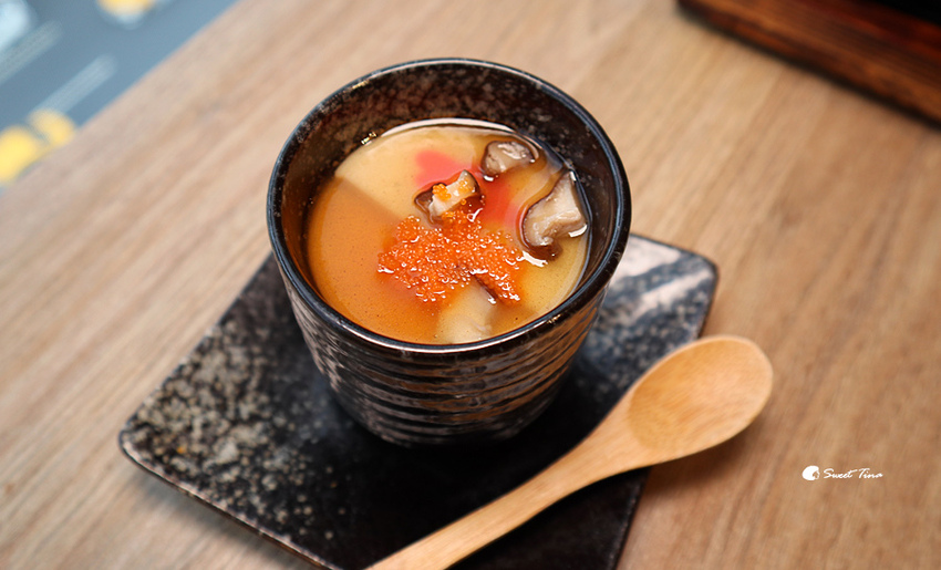 加購的茶碗蒸加入了香菇、魚板、魚卵,淋上了濃郁的醬料,味道香醇,是屬於口味較重的茶碗蒸。