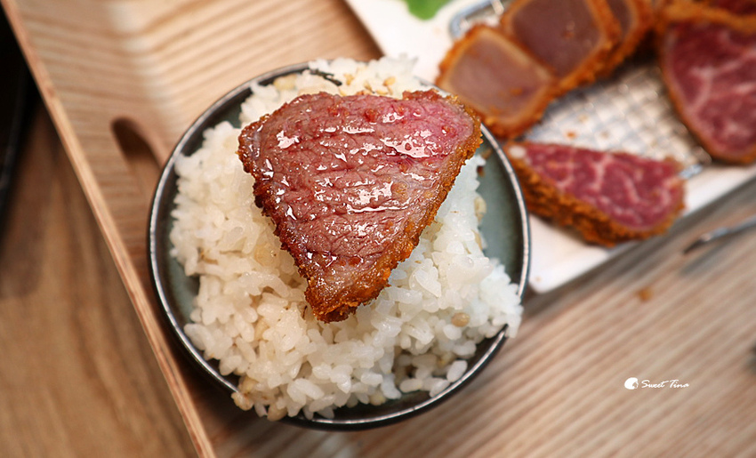 炸冷藏黑牛霜降+炸南方黑鮪魚上肉雙拼定食- 這雙拼的份量等於一般餐點的雙倍量,光看就很過癮,還能一次品嚐到二種虎次的招牌美味。