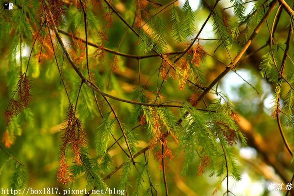 每年在入冬後,落羽松就會變紅落葉,景色相當美麗,一點都不輸給楓紅之美,更是不少攝影愛好者的私人景點,