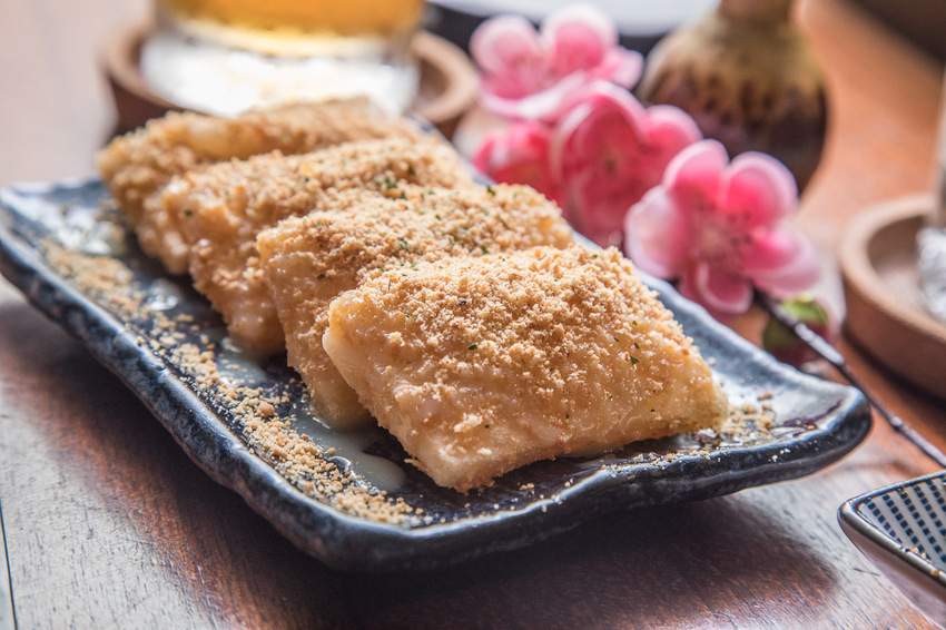 居酒屋也是有甜點的唷,大村武串燒居酒屋-大安店的炸麻糬可以說是女孩們的最愛,嚴選日式麻糬下鍋油炸,再淋上煉乳跟大量的花生粉