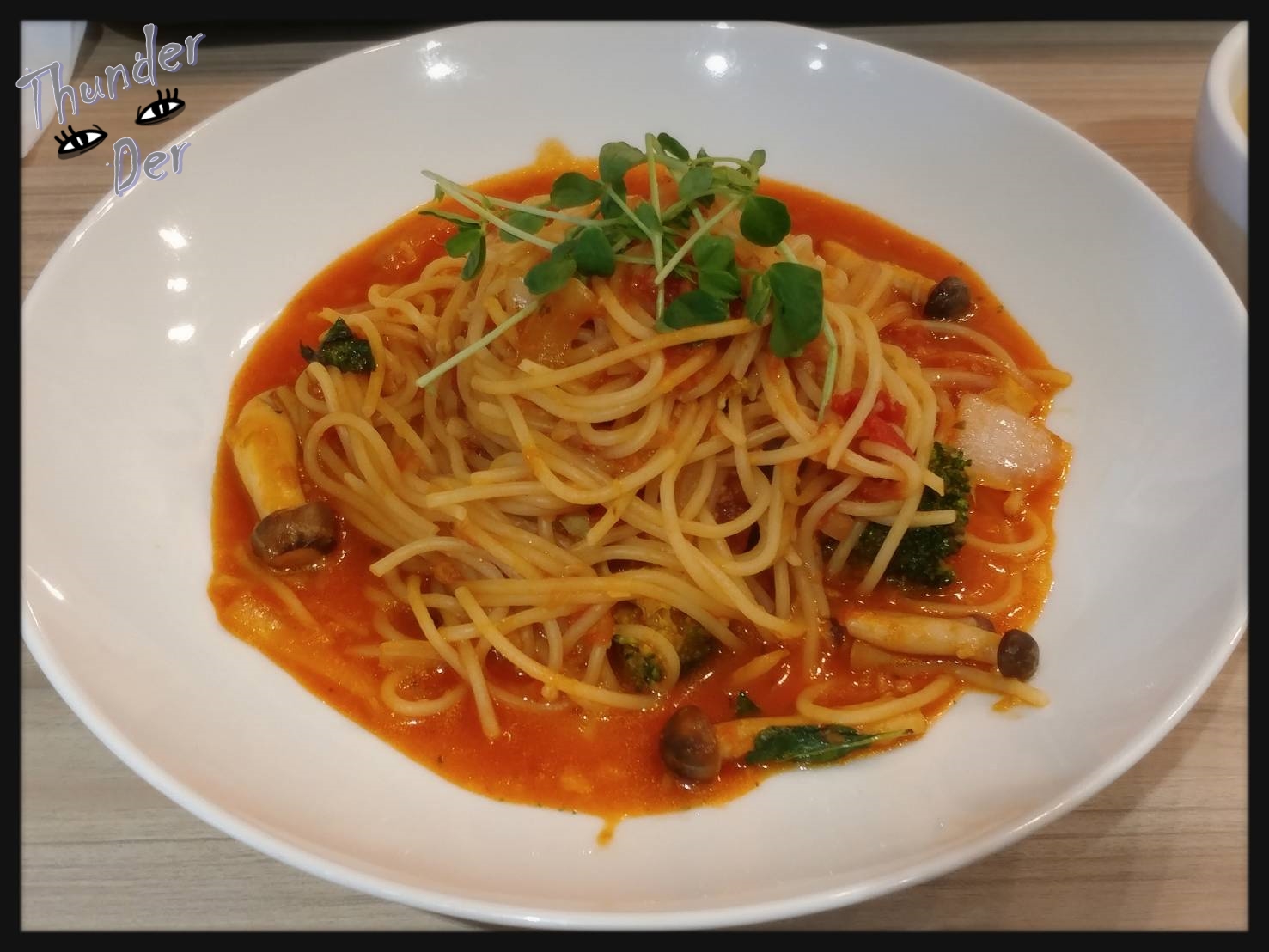 滿滿的鴻喜菇和酸甜的義大利麵條,好食!!